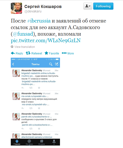 Курьезный момент: через день после выступления Садовского на конференции его twitter-аккаунт был взломан и заспамлен всякой ерундой.