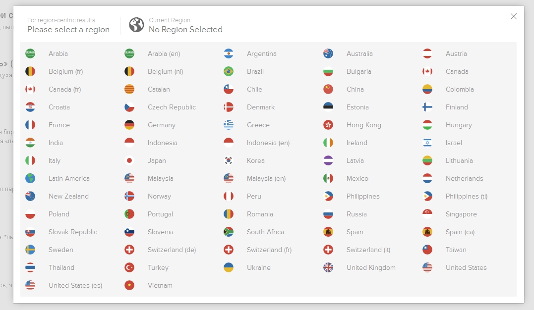 При клике на значок земного шара, расположенный на странице результатов поиска, открывается доступ к данному функционалу. Беларусь, правда, в числе доступных регионов по традиции не числится.